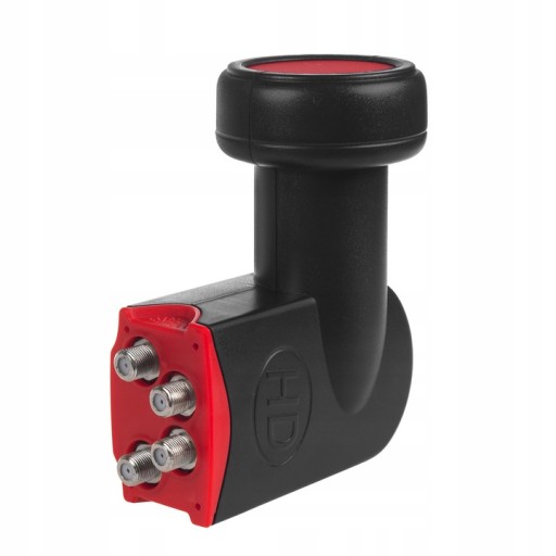 Konwerter satelitarny typu quad posiada w jednej obudowie połączone cztery pełno zakresowe konwertery. Nasz model jest urządzeniem klasy premium o bardzo niskim współczynniku szumów. Bez problemu radzi sobie z odbiorem sygnału HD. Konwerter mocujemy do anteny satelitarnej w standardowym uchwycie 40 mm.
