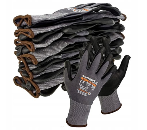 - rękawice robocze, ochronne, dziane, powlekane nitrylem do prac monterskich