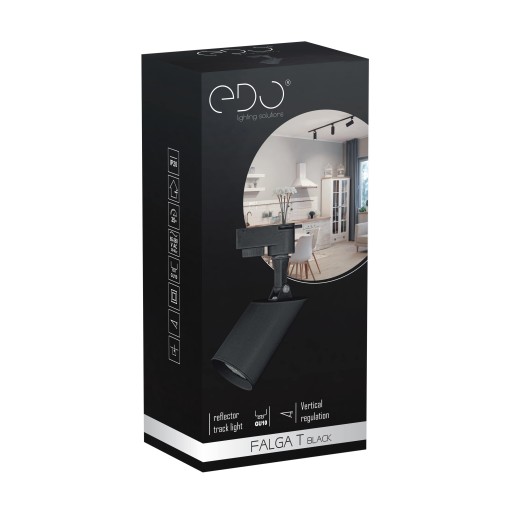 Lampa reflektor na szynoprzewód FALGA T Black, IP20,220-240V, czarna EDO777476 EDO