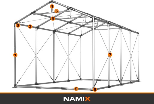 Stelaż namiotu, to solidna konstrukcja wykonana w 100% ze stali, która została dodatkowo ocynkowana. Zapewnia to wieloletnie użytkowanie namiotu.