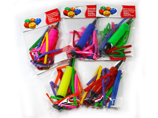 Zestaw zawiera: pompka + kolorowe balony rurki + instrukcja w zestawie, z możliwościami tworzenia przeróżnych figur, zwierzątek, roślin itp.