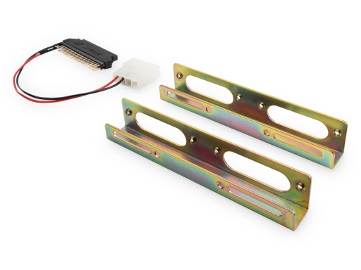 umożliwia podłączenie dysku 2,5" IDE typowego dla notebooków do typowego złącza stosowanego do podłączania dysków 3,5" w komputerach stacjonarnych. Płytka przejściówki zawiera standardowe złącze Molex do podłączenia zasilania. W komplecie uchwyty do montażu dysku we wnęce na dyski 3,5".