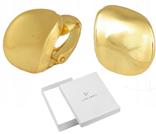 Złote klipsy firmy Colibra, wykonane ze stopu jubilerskiego trwale pozłacanego 24 karatowym złotem, zgodnie z najwyższą sztuką złotniczą oraz dbałością o detale, posiadają oryginalne metki firmowe.