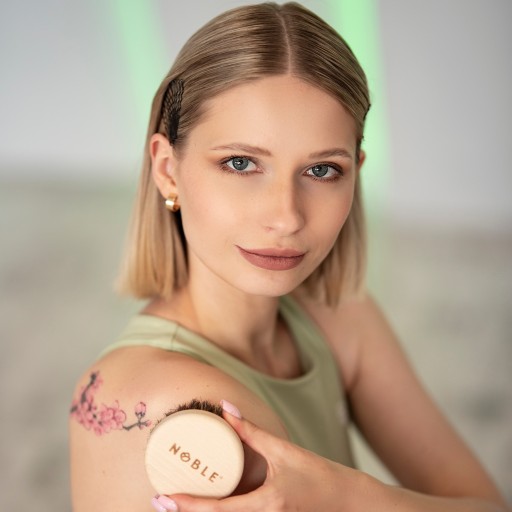 - Szczotka NOBLE idealnie pasuje do dłoni a wielkość włosia nadaje się do masażu okolic biustu.