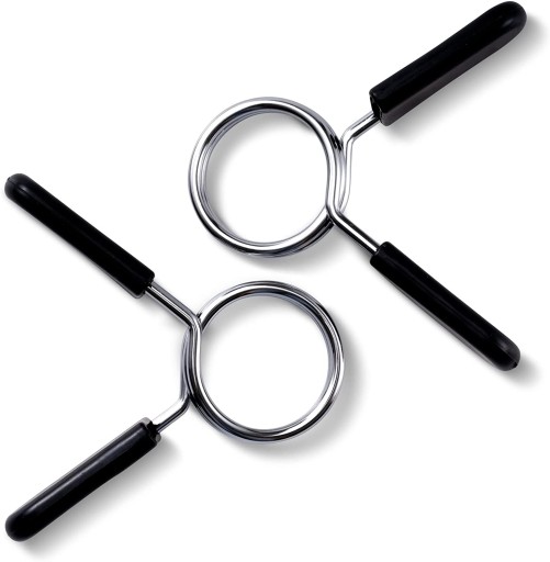 Zaciski sprężynowe są obecnie najbardziej powszechną i sprawdzoną metodą zabezpieczenia talerzy i zapobiegnięcia ich zsunięciu się z gryfu. Ich montaż jest zdecydowanie szybszy, bardziej komfortowy i pewniejszy od zacisków zakręcanych, które często się rozkręcają w trakcie wykonywania ćwiczeń i nie pozwalają w pełni skupić się na treningu.