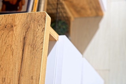 - KORPUS: płyta meblowa grubości 16 mm zabezpieczona okleiną ABS