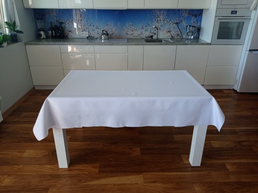 - Obrus pokryty apreturą wodo- i plamoodporną;