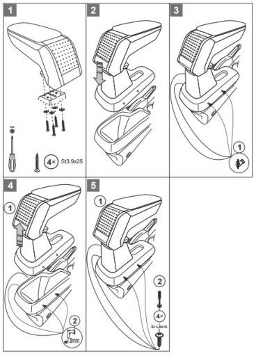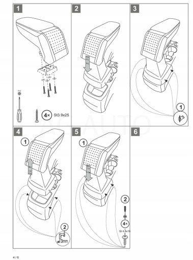 Elementy montażowe są dopracowane przez technologów w najmniejszym szczególe dzięki czemu podłokietnik będzie pasował do Państwa samochodu idealnie, jak fabryczny. Montaż jest bardzo prosty i polega na przykręceniu podłokietnika wraz z adapterem do tunelu środkowego za pomocą wkrętów. W komplecie dostarczamy instrukcję montażu (dostępną również drogą elektroniczną) oraz wkręty mocujące. Konstrukcja zapewnia błyskawiczny samodzielny montaż przez nałożenie na konsolę środkową i dokręcenie wkrętów. Po zamontowaniu podłokietnik jest całkowicie stabilny i wygląda bardzo estetycznie.