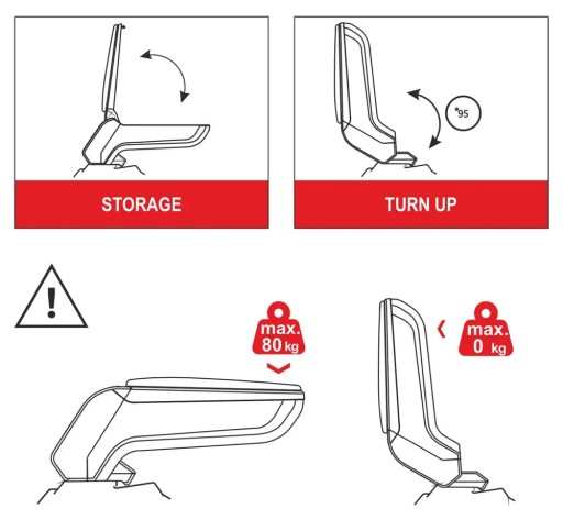 - podłokietnik można podnieść do góry (95 stopni).