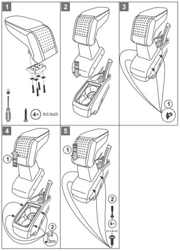 Elementy montażowe są dopracowane przez technologów w najmniejszym szczególe dzięki czemu podłokietnik będzie pasował do Państwa samochodu idealnie, jak fabryczny. Montaż jest bardzo prosty i polega na przykręceniu podłokietnika wraz z adapterem do tunelu środkowego za pomocą wkrętów. W komplecie dostarczamy instrukcję montażu (dostępną również drogą elektroniczną) oraz wkręty mocujące. Konstrukcja zapewnia błyskawiczny samodzielny montaż przez nałożenie na konsolę środkową i dokręcenie wkrętów. Po zamontowaniu podłokietnik jest całkowicie stabilny i wygląda bardzo estetycznie.