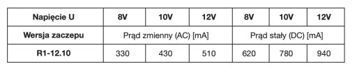 - Napięcie znamionowe U: 10 ± 2V *