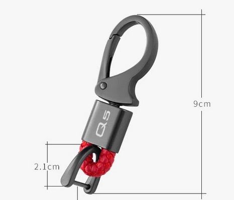 Zdjęcie z wymiarami przedstawia rozmiar sprzedawanego produktu (sprzedawany karabinczyk jest z plecionką czarno-czerwoną z napisem Q5)