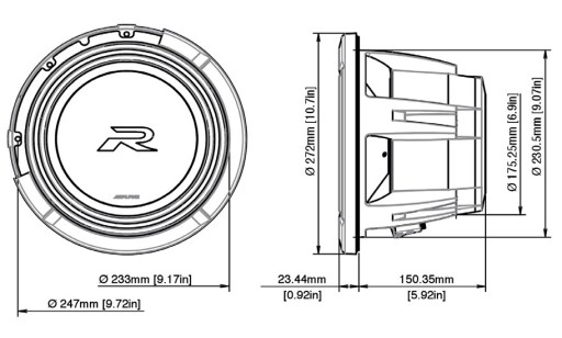 Subwoofery typu R zostały całkowicie przekonstruowane, aby zapewnić większą elastyczność ich montażu i uniwersalność zastosowań mającą na celu zbudowanie idealnego systemu odtwarzania dźwięku. Przy głębokości montażowej wynoszącej 150,5mm dla subwoofera 25 cm, te nowe konstrukcje zapewniają niemal 20% redukcję głębokości montażowej i oferują jednocześnie jeszcze większą moc wyjściową.