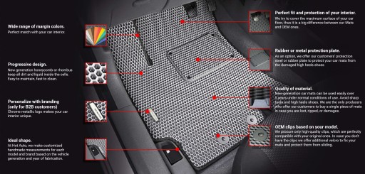 Dywaniki HOT AUTO wykonane są ze specjalnego materiału EVA na dywaniki samochodowe, kt ry jest bezwonny, wodoodporny, nie blaknie i nie plami białych but w, ma wysoką wytrzymałość i trwałość.