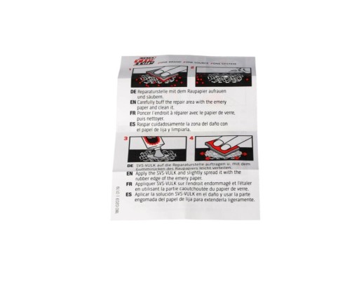 Instrukcja naprawy w zestawie, wsparta prostym procesem naprawy, sprawia, że użytkownik nawet bez wcześniejszego doświadczenia z łatkami dętkowymi będzie w stanie skutecznie dokonać naprawy w terenie.