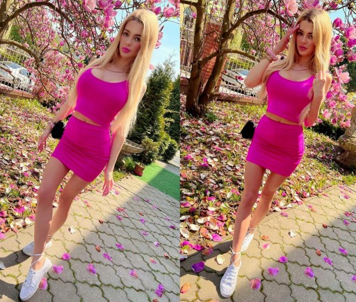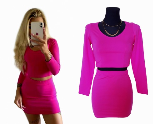 KOMPLET Top + Spódniczka mini w pięknym kolorze RÓŻOWYM