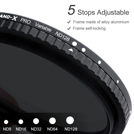 Płynna regulacja zastępuję potrzebę stosowania oddzielnych filtrów ND8, ND16, ND64, ND128 i ich uciążliwego zmieniania.