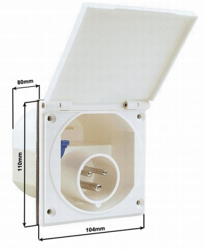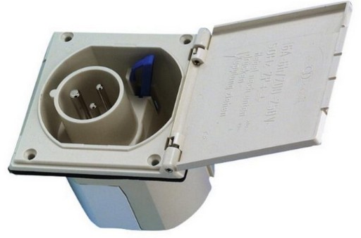 Gniazdo przyłączeniowe do prądu typ CEE. Do przyczepy kempingowej lub kampera, do montażu w ścianie.