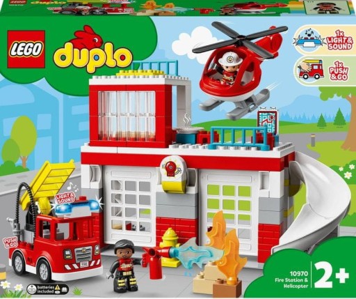 LEGO® DUPLO® Rescue Remiza strażacka i helikopter (10970) to duży zestaw wypełniony ciekawymi szczegółami i fascynującymi funkcjami, które inspirują maluchy w wieku od 2 lat do wspaniałej zabawy.