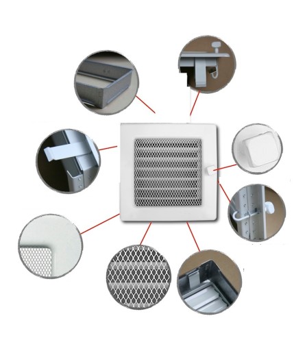 Każda z kratek wyposażona jest w kieszeń, wykonaną z blachy ocynkowanej.