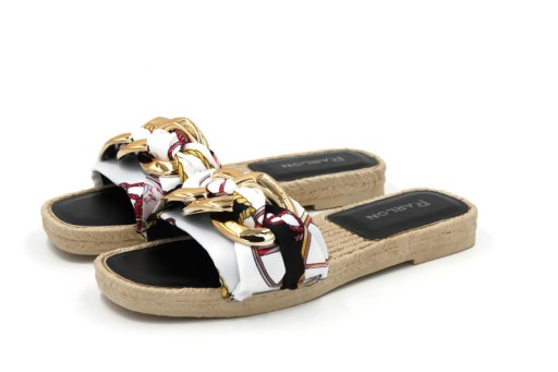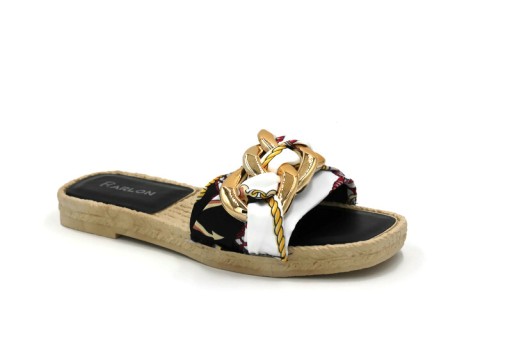 XS-8 CZARNE KLAPKI ZDOBIONE ZŁOTYM ŁAŃCUCHEM R.39