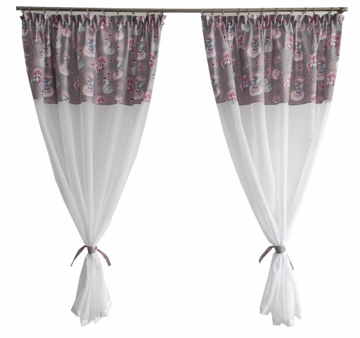 Górna część firanki uszyta ze 100% bawełny, a dół firanki z białego gładkiego woalu.