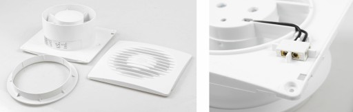 - Wentylator montowany jest bezpośrednio w otworze kanału wentylacyjnego za pomocą wkrętów.