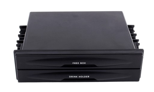 ✅ Kieszeń posiada dwie szufladki (górną służącą jako schowek oraz dolną z klasycznym cup holderem).