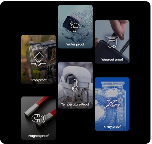Karta pamięci MICRO SD SAMSUNG Pro Endurance odznacza się wysoką jakością, dzięki której karta jest odporna na zmienne temperatury i inne niekorzystne czynniki. Dzięki temu doskonale sprawdzi się również w kamerach zewnętrznych.