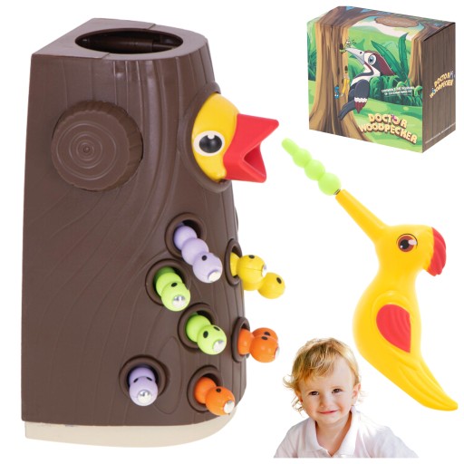 ⭐ EDUKACJA PRZEZ ZABAWĘ - Gra polega na łapaniu robaczków magnetycznym dziobem dzięcioła i karmieniu nimi pisklęcia. Wymaga precyzji, co doskonale rozwija zdolności motoryczne i koordynację dziecka.
