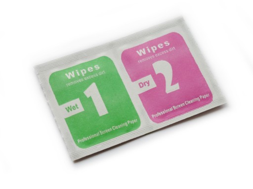 - 1x Ściereczka nr 1 - nasączona alkoholem - do odtłuszczenia ekranu