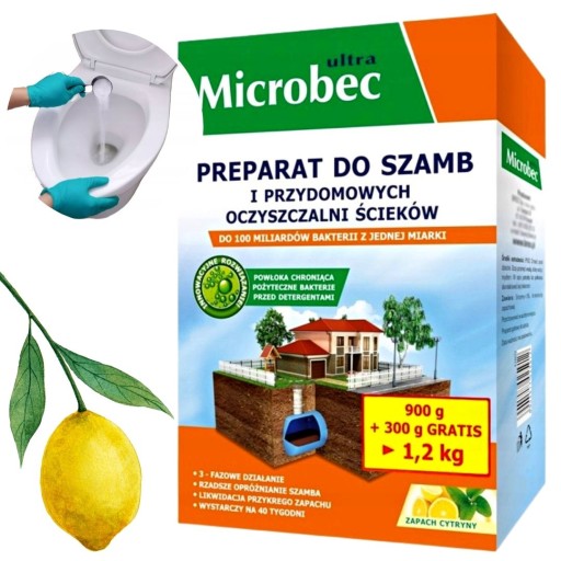 ✅ Preparat do szamb i przydomowych oczyszczalni ścieków Microbec Ultra 1,2 kg zapach Cytrynowy ✅