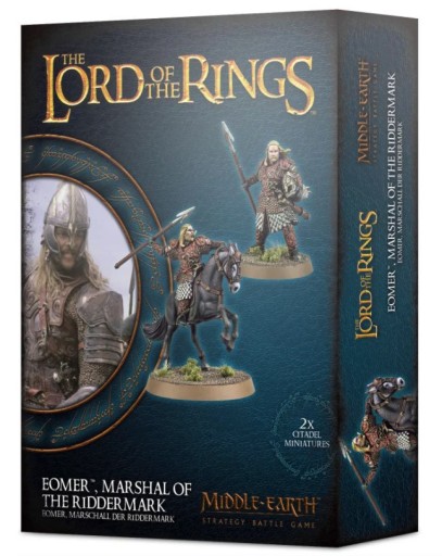 Éomer, marszałek Riddermark to wieloczęściowy zestaw plastikowy dostarczany jako 2 modele, 1 na nogę i 1 zamontowany i ładujący. Oba modele mają opcje głowy w hełmie lub bez hełmu, a także możliwość rzucania włócznią lub mieczem w jednej ręce oraz tarczą lub hełmem w drugiej. Oba modele są ubrane w ciężką zbroję, a koń może być złożony bez zbroi lub z łuską.