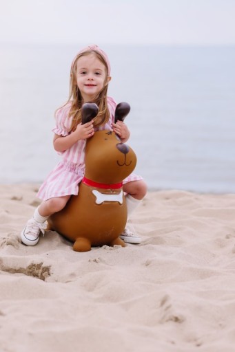 Gumowy skoczek dla dziecka to mnóstwo skocznej zabawy, którą najmłodsi uwielbiają! Skoczek wykonany jest z wytrzymałej, atestowanej gumy, więc nie ma ryzyka że podczas zabawy się przebije. Gumowy skoczek nie posiada żadnych ruchomych części, dzięki czemu jest odporny na najbardziej beztroskie traktowanie. Skoczek nadaje się do zabawy w pomieszczeniu jak i na dworze - wystarczy go nadmuchać dołączoną do zestawu pompką i gotowe!