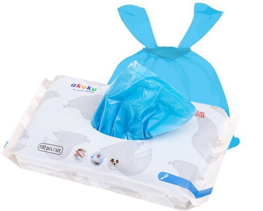 - kolor błękitny, skrywa zawartość zużytych pieluszek i chusteczek