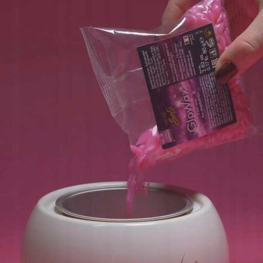 Cherry Pink Glowax - to piękny brokatowy wosk, idealny do depilacji twarzy. Ten syntetyczny wosk polimerowy poziomu Premium jest przeznaczony do depilacji delikatnych obszarów: