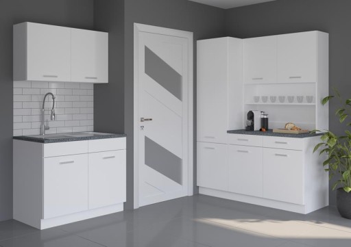Fronty bufetu wykonane z płyty laminowanej w kolorze białym o grubości 16mm