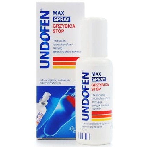 Undofen Max Spray to lek przeciwgrzybiczy w formie aerozolu do stosowania na skórę. Substancją czynną leku jest terbinafiny chlorowodorek.