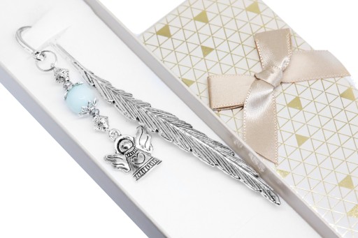 Elegancka zakładka do książki z zawieszką w kształcie anioła z dodatkiem srebrnego hematytu oraz niebieskiego jadeitu.