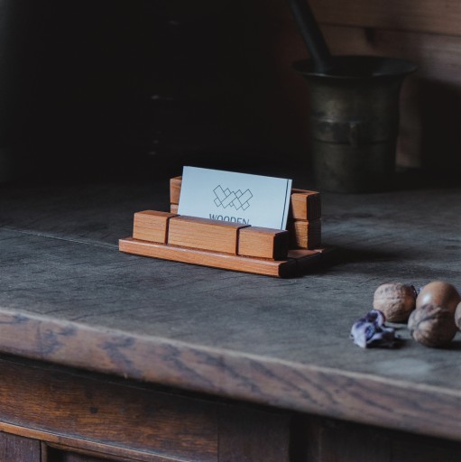 Zestaw drewnianych akcesoriów na biurko. Przybornik na karteczki, wizytownik, kubek na długopisy, Przybornik na kartki A4.
