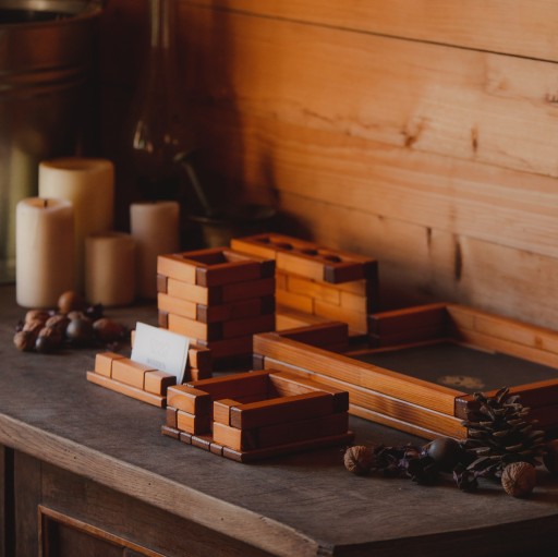 Produkty zostały wykonane w krakowskiej Pracowni Kreatywnej Wooden Manufacture specjalizującej się w produkcji eleganckich, wysokiej jakości, ręcznie robionych, drewnianych akcesoriów do domu i biura. Każdy produkt to kombinacja pojedynczych, połączonych ze sobą drewnianych modułów. Ten wspólny mianownik pozwala na dowolne łączenie poszczególnych akcesoriów w zestawy, w ramach każdej z oferowanych kolekcji.