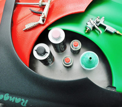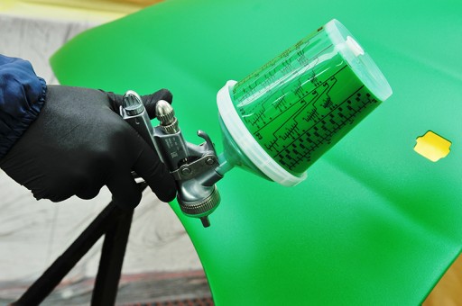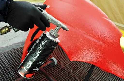 1 - czerwona; pistolet lakierniczy HP lub HVLP z dyszą 1,5 - 2,0mm - dolane 30% rozcieńczalnika akrylowego (około 250 ml na opakowanie)
