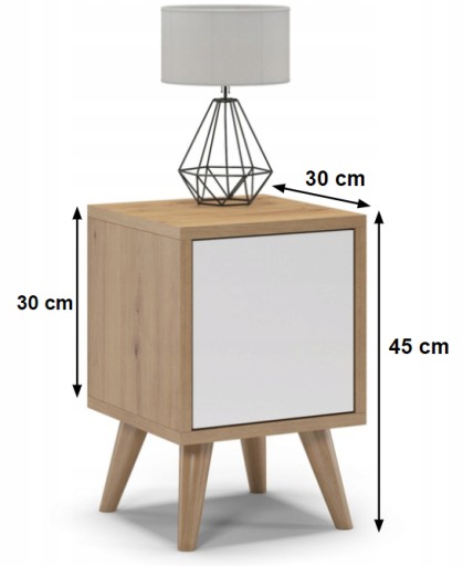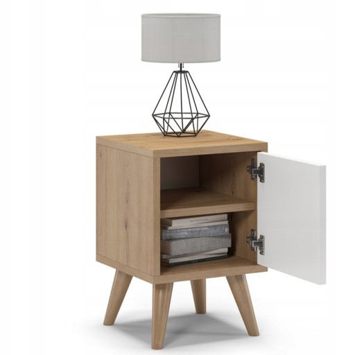 Stolik Nocny Drewniany Białe Drzwiczki, Dwie Półki