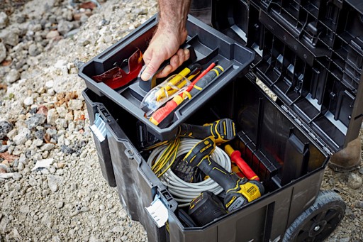 - Mobilna skrzynia z automatycznie otwieraną pokrywą FATMAX PRO-STACK marki Stanley