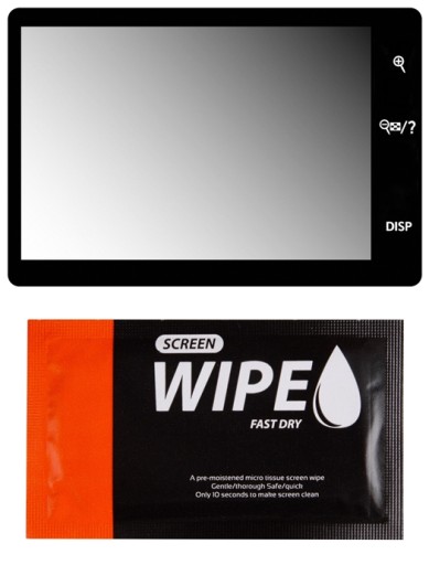 W zestawie znajduje się także nasączana ściereczka do oczyszczenia ekranu LCD przed montażem.