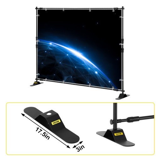 Ten zestaw stojaka do tła jest idealnym rozwiązaniem do ekspozycji, gdy potrzebujesz stojaka na duży baner lub potrzebujesz profesjonalnej prezentacji, aby pokazać swoją firmę. Nasze stoisko banerowe można łatwo skonfigurować jako tło do fotobudki, targi, wydarzenia medialne i nie tylko. Trwała i lekka aluminiowa rama jest przeznaczona do częstego użytkowania. Regulowana wysokość i szerokość pozwalają na mocny stojak na tło, który pasuje do banerów w różnych rozmiarach.