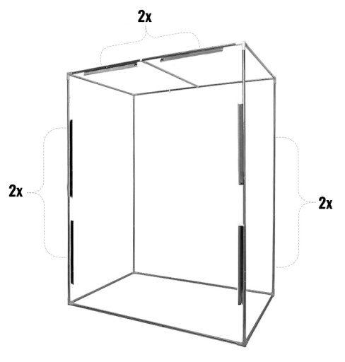 Namiot posiada w pełni demontowany stelaż, na który naciąga się wierzchnią warstwę grubego, czarnego materiału. Następnie do wewnątrz wpina się listwy LED (łącznie 6 sztuk), osłania je tkaniną dyfuzyjną i montuje tło w wybranym kolorze. W zestawie znajduje się komplet elementów montażowych, listwy LED wraz z zasilaczami oraz żabki, umożliwiające łatwe zamontowanie wybranego przedmiotu wewnątrz.