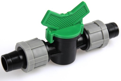 Zawór liniowy służy do odcinania przepływu wody połączonych ze sobą dwóch odcinków przewodów instalacji taśm kroplujących o średnicy 16mm.