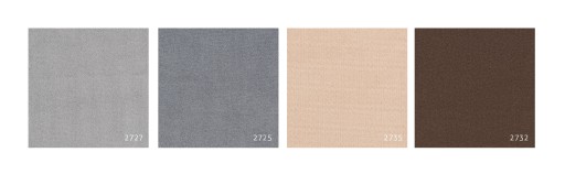 Tkanina - dzianina w 100% poliestrowa o dużej odporności na ścieranie - 45tyś cykli Martindale'a. Welurowa. Miękka i przyjemna w dotyku, bardzo wytrzymała. 16 wariantów kolorystycznych pozwala na nieograniczone zestawianie barw. Kolory żywe, mocno nasycone, przyciągające wzrok.