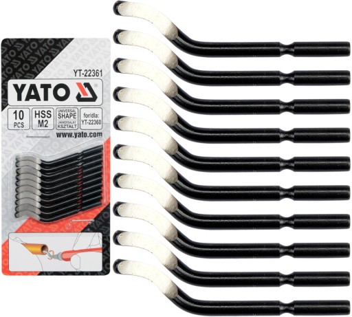 Zestaw ostrzy zapasowych do gratownika. Wykonane są z HSS. Pasują do gratownika YATO YT-22360. W zestawie 10szt. Standardowy uchwyt mocujący.